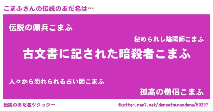 | 意味不明あだ名 | 『自称こまふ』『永久保存こまふ』 |