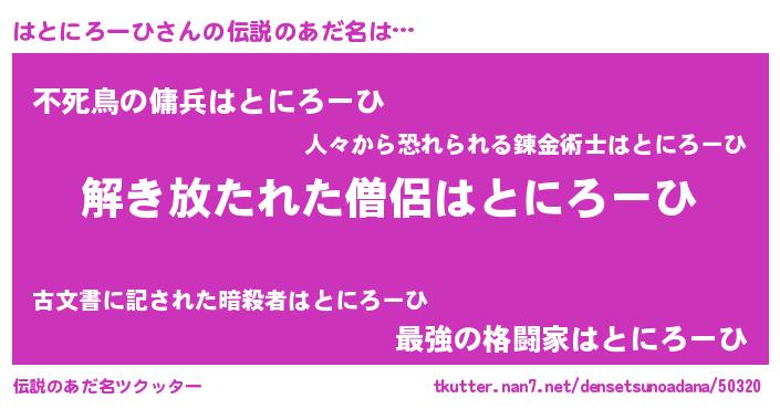 | 意味不明あだ名 | 『とにかく怪しいはとにろーひ』 |