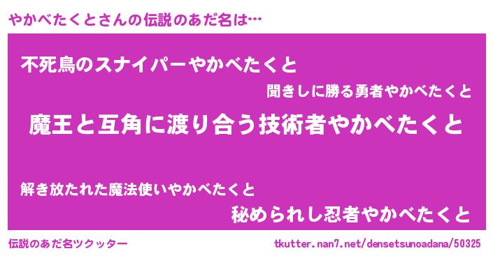 | 胡散臭い通販商品みたいなあだ名 | 『テレビで話題の高麗人参…その名も「やかべたくと」』 |