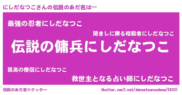 | 胡散臭い通販商品みたいなあだ名 | 『必ず成功する水晶球…その名も「にしだなつこ」』 |
