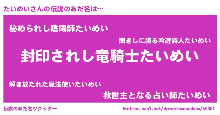 | ヒーロー風カッコイイあだ名 | 『スーパータイメイ』『仮面タイダー』 |