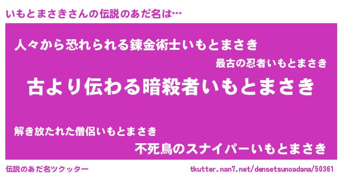 | ヒーロー風カッコイイあだ名 | 『ウルトラ戦士イモトマサキ』 |