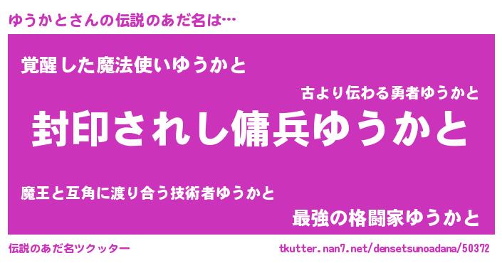 | ヒーロー風カッコイイあだ名 | 『仮面ユウダー』『スーパーユウカト』 |
