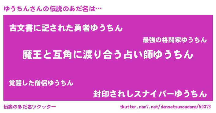 | ヒーロー風カッコイイあだ名 | 『最強戦士ユウチン』『仮面ユウダー』 |