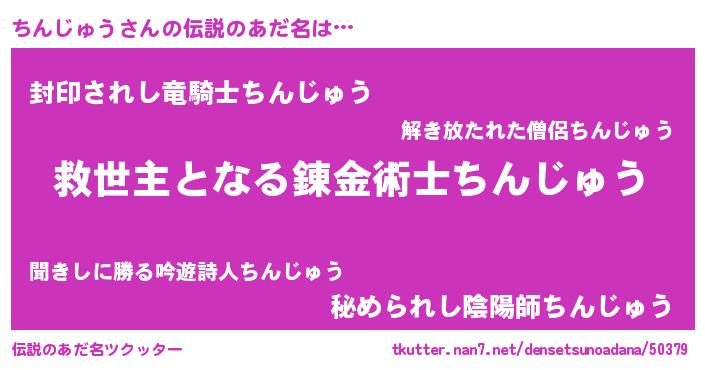 | ヒーロー風カッコイイあだ名 | 『慈愛の使者ちんじゅう』『仮面チンダー』 |