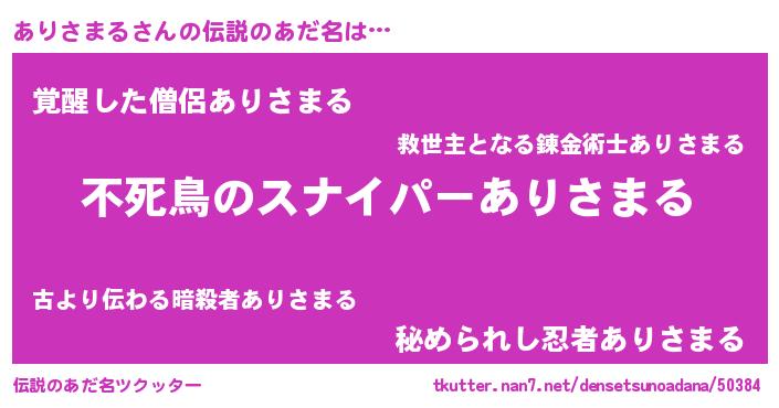 | 胡散臭い通販商品みたいなあだ名 | 『モテモテ間違いなし霊験あらたかなお札…その名も「ありさまる」』 |