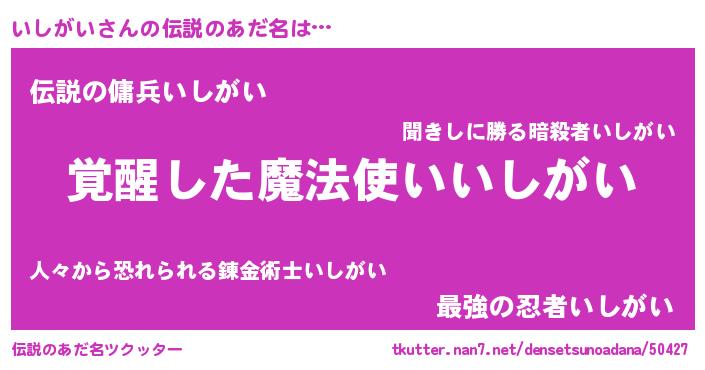 | ヒーロー風カッコイイあだ名 | 『天弓騎士イシ』『スーパーイシガイ』 |