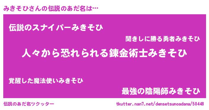 | ヒーロー風カッコイイあだ名 | 『正義の使者みきそひ』『ネオミキソヒ』 |