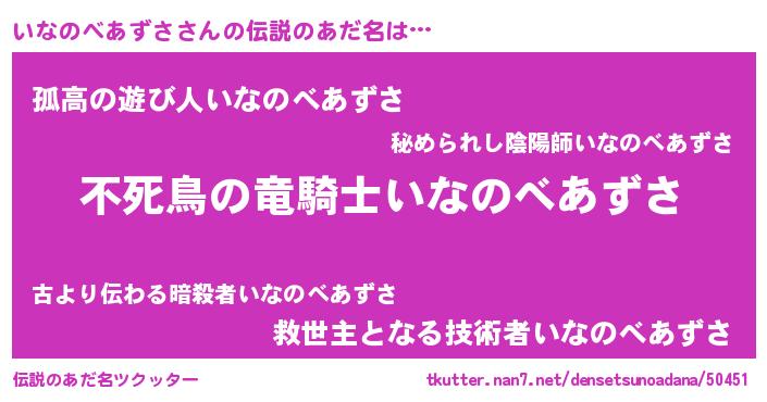 | 女子向けラノベタイトル風あだ名 | 『いなのべあずさ姫と円卓の騎士』 |