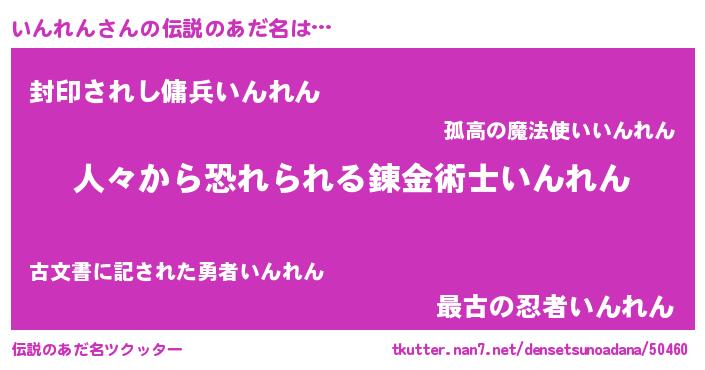 | ヒーロー風カッコイイあだ名 | 『友情の使者いんれん』『仮面インダー』 |