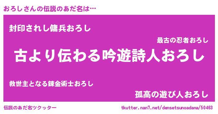 | 男性向けラノベタイトル風あだ名 | 『おろしという概念が存在しない退屈な世界 』 |