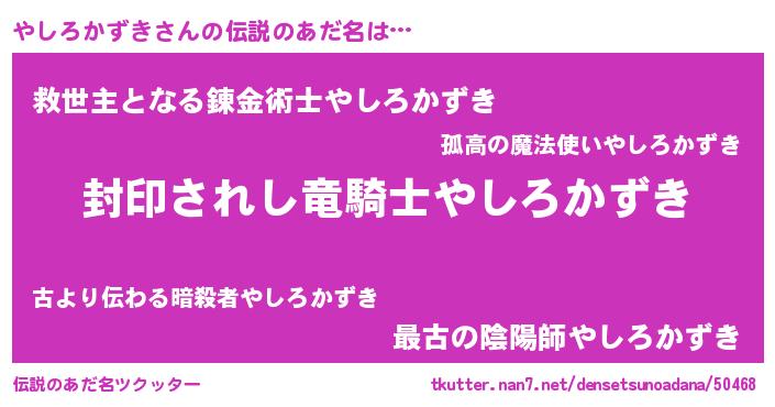 | 意味不明あだ名 | 『住所不定無職やしろかずき(4歳)』 |