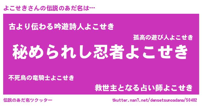 | ファンタジー風あだ名 | 『エターナルヨコセキー』 |