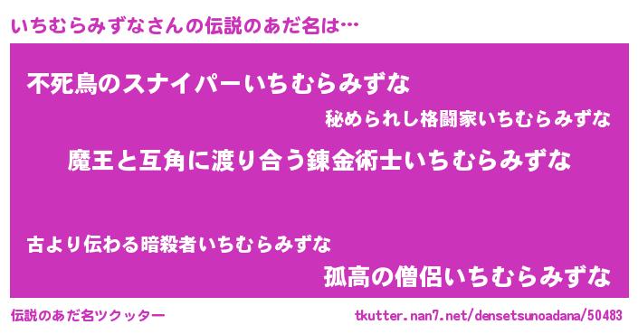 | 女子向けラノベタイトル風あだ名 | 『いちむらみずな恋絵巻』 |