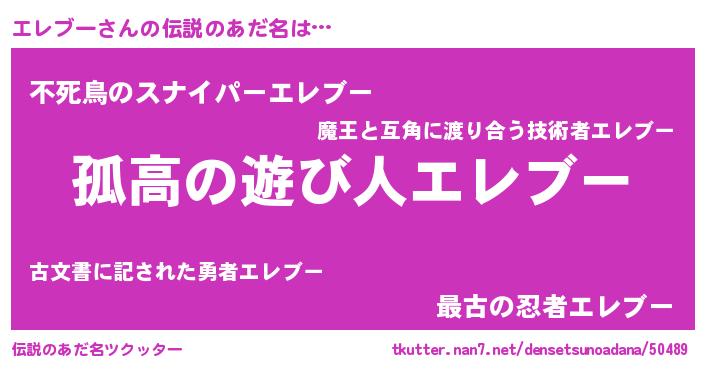 | 意味不明あだ名 | 『とにかく怪しいエレブー』 |