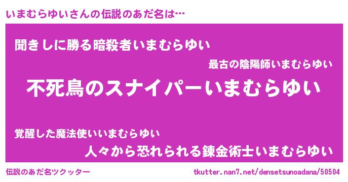 | 胡散臭い通販商品みたいなあだ名 | 『モテモテ間違いなし霊験あらたかなお札…その名も「いまむらゆい」』 |
