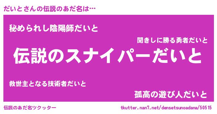 | ヒーロー風カッコイイあだ名 | 『超時空戦士ダイト』『スーパーダイト』 |