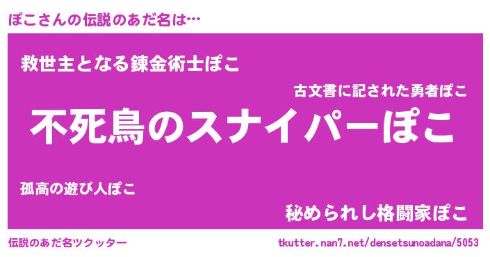 | 男性向けラノベタイトル風あだ名 | 『転生したらぽこだった件』 |