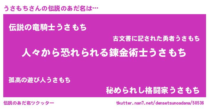 | ヒーロー風カッコイイあだ名 | 『超時空戦士ウサモチ』『仮面ウサダー』 |