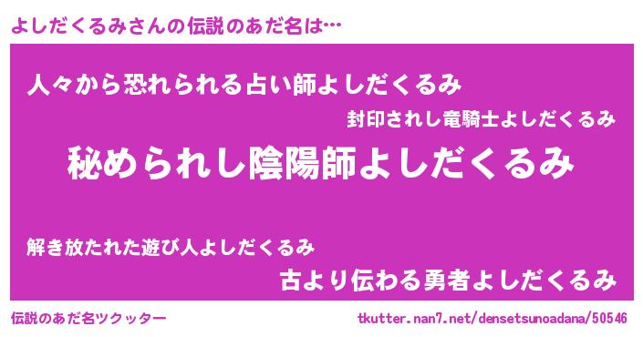 | ヘコむあだ名 | 『つくし』『よしだくるみ(遠い目)』 |