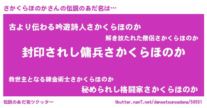 | 意味不明あだ名 | 『自称さかくらほのか』 |