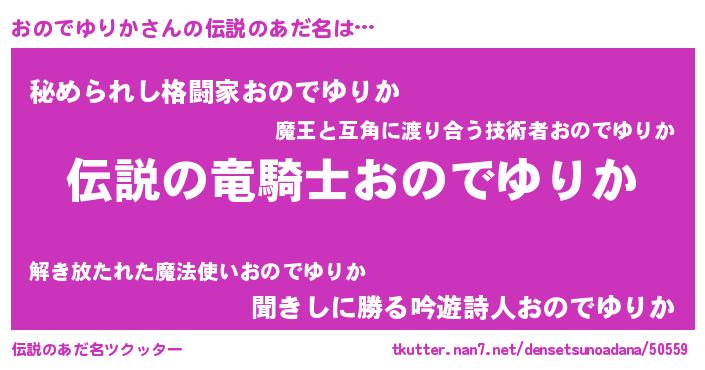 | 男性向けラノベタイトル風あだ名 | 『オノデユリカスレイヤー』 |