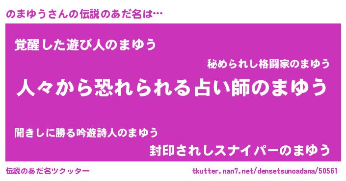 | ヒーロー風カッコイイあだ名 | 『正義の使者のまゆう』『仮面ノマダー』 |