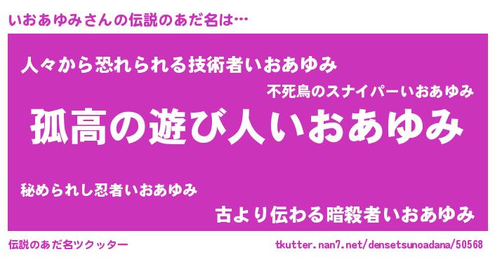 | 意味不明あだ名 | 『とにかく怪しいいおあゆみ』 |