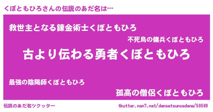 | 男性向けラノベタイトル風あだ名 | 『くぼともひろという概念が存在しない退屈な世界 』 |