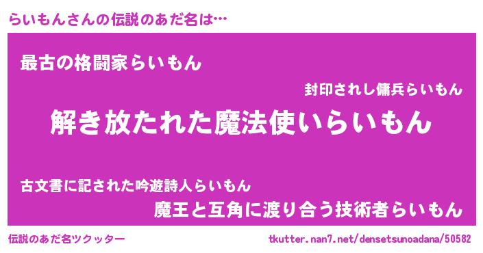 | 胡散臭い通販商品みたいなあだ名 | 『世界中を虜にした100年もののヴィンテージワイン…その名も「らいもん」』 |