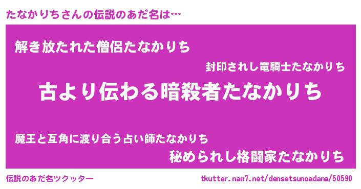 | ヒーロー風カッコイイあだ名 | 『ネオタナカリチ』『銀牙騎士タナ』 |