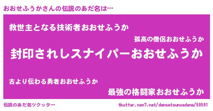 | ヒーロー風カッコイイあだ名 | 『スーパーオオセフウカ』『幻影騎士オオ』 |