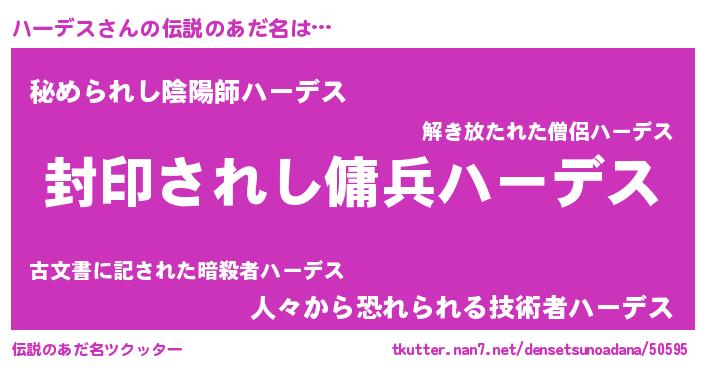 | 意味不明あだ名 | 『住所不定無職ハーデス(56歳)』 |