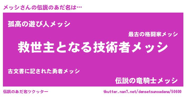 | ヒーロー風カッコイイあだ名 | 『天空の使者メッシ』『黄金騎士メッ』 |