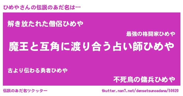 | ヒーロー風カッコイイあだ名 | 『仮面ヒメダー』『最強戦士ヒメヤ』 |