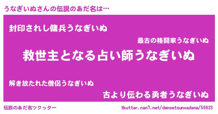 | ヒーロー風カッコイイあだ名 | 『慈愛の使者うなぎいぬ』『魔戒騎士ウナ』 |