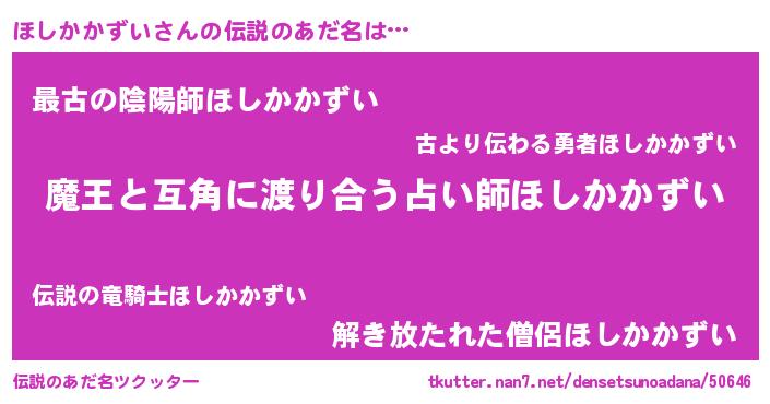 | 意味不明あだ名 | 『住所不定無職ほしかかずい(62歳)』 |