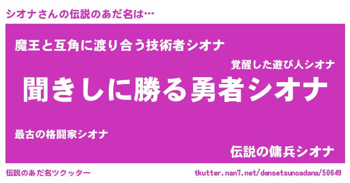 | 男性向けラノベタイトル風あだ名 | 『シオナという概念が存在しない退屈な世界 』 |
