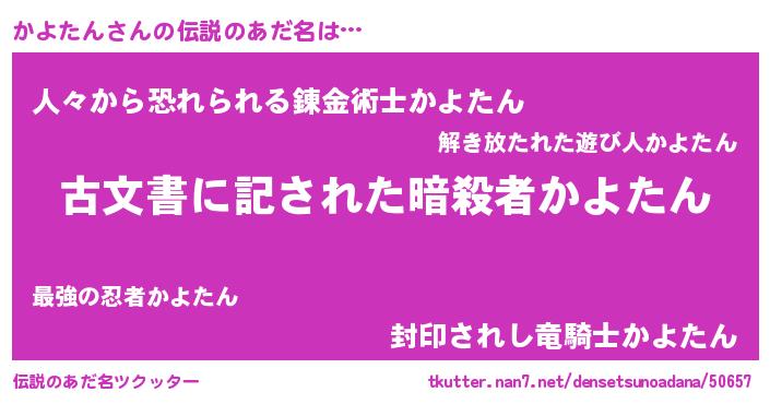 | 意味不明あだ名 | 『永久保存かよたん』『自称かよたん』 |