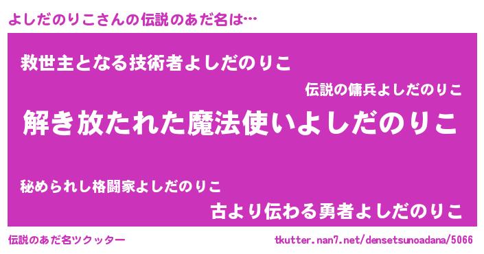 | 男性向けラノベタイトル風あだ名 | 『この素晴らしい世界によしだのりこを!』 |