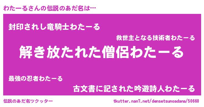 | ヒーロー風カッコイイあだ名 | 『サイバー戦士ワタール』『幻影騎士ワタ』 |