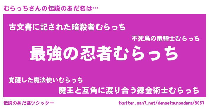 | 意味不明あだ名 | 『むらっちフォーエバー』『自称むらっち』 |