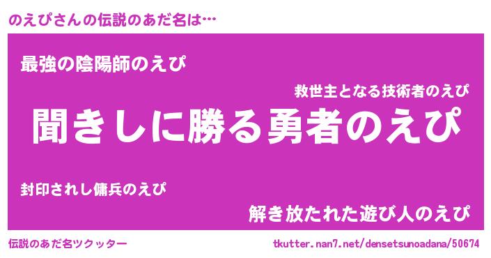 | 意味不明あだ名 | 『永久保存のえぴ』『のえぴフォーエバー』 |