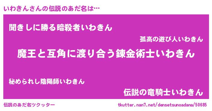 | 意味不明あだ名 | 『眠気覚ましガムいわきん味』 |