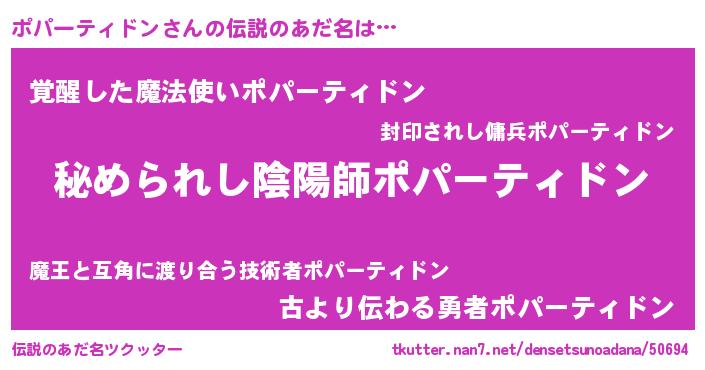 | 男性向けラノベタイトル風あだ名 | 『ポパーティドンスレイヤー』 |