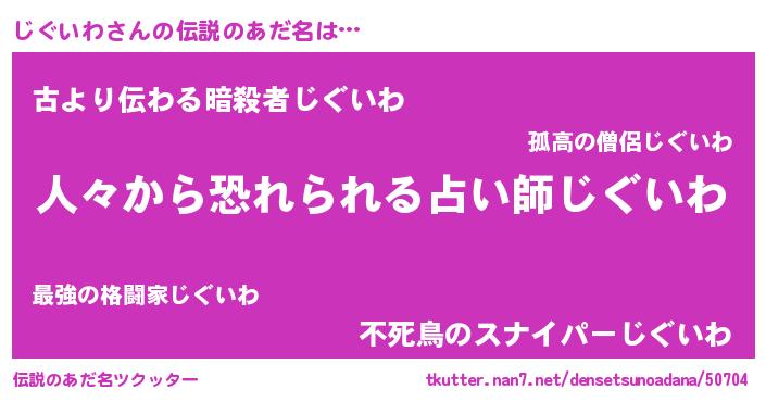 | 欧米人風あだ名 | 『ダニエルじぐいわ』『マイケルじぐいわ』 |