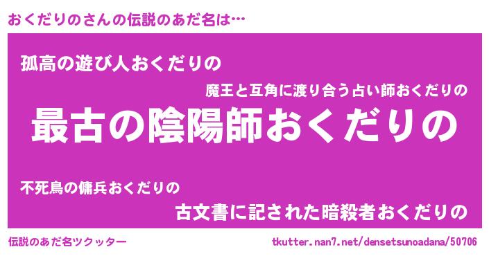 | 胡散臭い通販商品みたいなあだ名 | 『世界中を虜にした世界で10本だけ現存している希少なブランデー…その名も「おくだりの」』 |