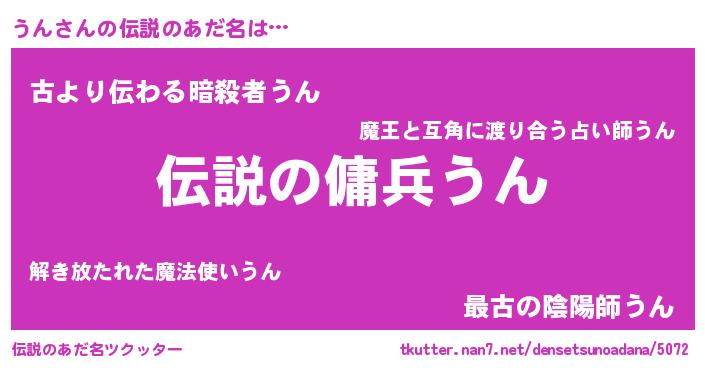 | 男性向けラノベタイトル風あだ名 | 『魔弾の王とうん』 |