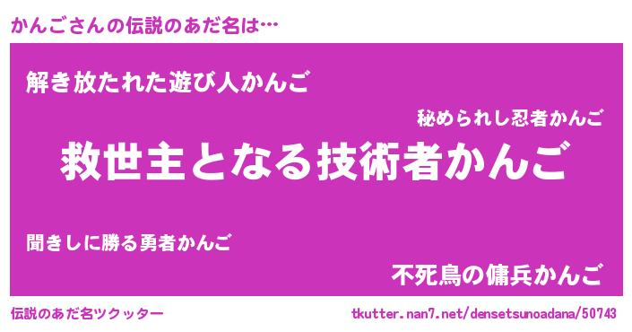 | ヒーロー風カッコイイあだ名 | 『慈愛の使者かんご』『幻影騎士カン』 |