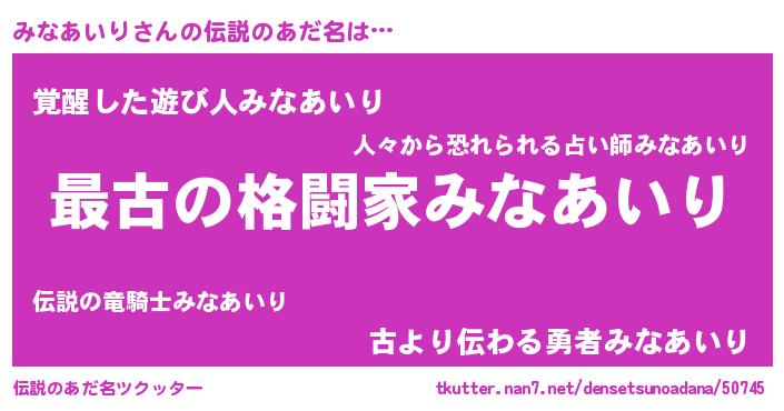 | 意味不明あだ名 | 『みなあいりフォーエバー』 |